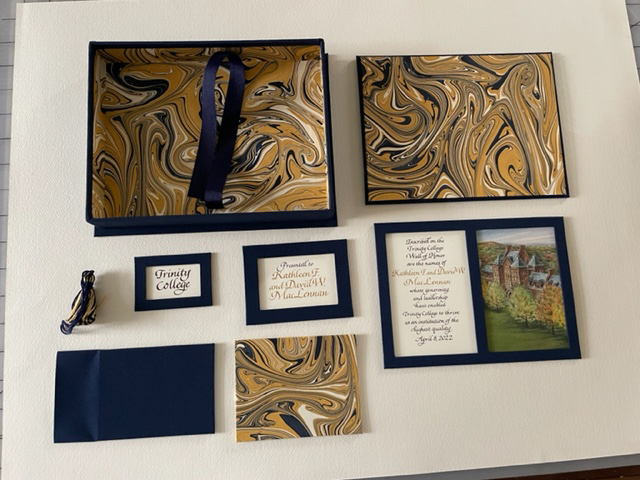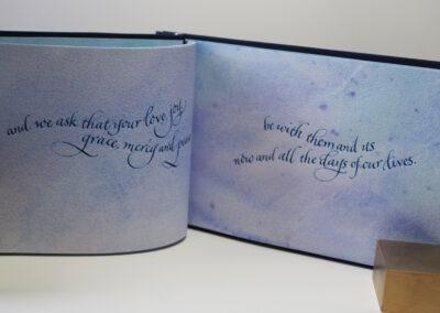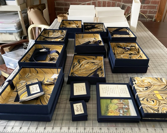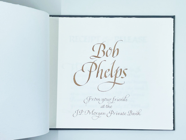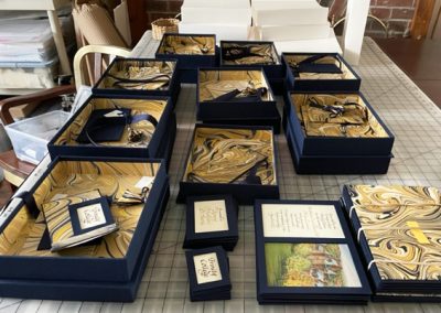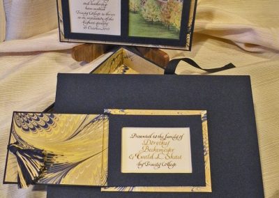 Pat Faust and I have been collaborating together for more than 10 years creating custom books, boxes and portfolio for universities, corporations, families and individuals. Pat’s fabulous constructions paired with calligraphy create treasured, intimate keepsakes.